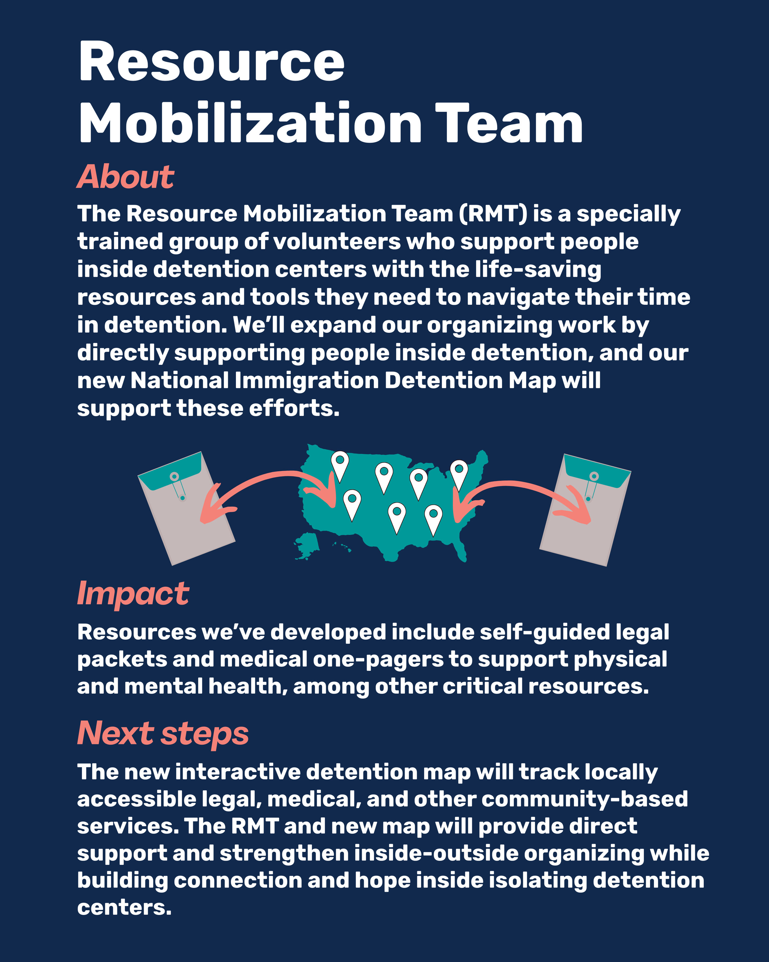 We’re implementing our new Resource Mobilization Team, which will spend countless hours providing direct support to people in detention.