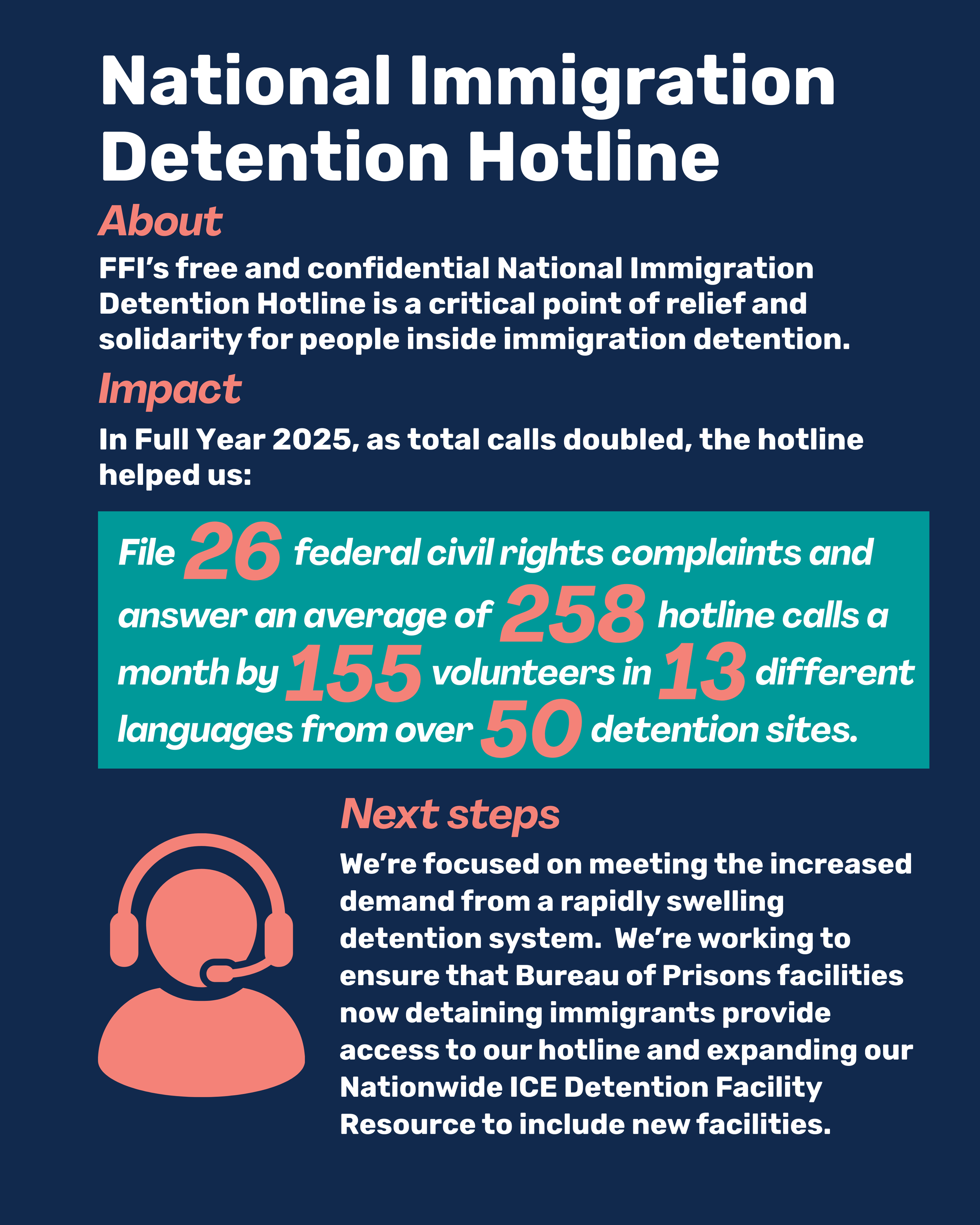 But we can’t do this work alone. Your generosity sustains us, and the success of our Annual Appeal campaign in this moment of extraordinary need will directly affect the reach of critical resources to impacted communities, like the National Immigration Detention Hotline.
